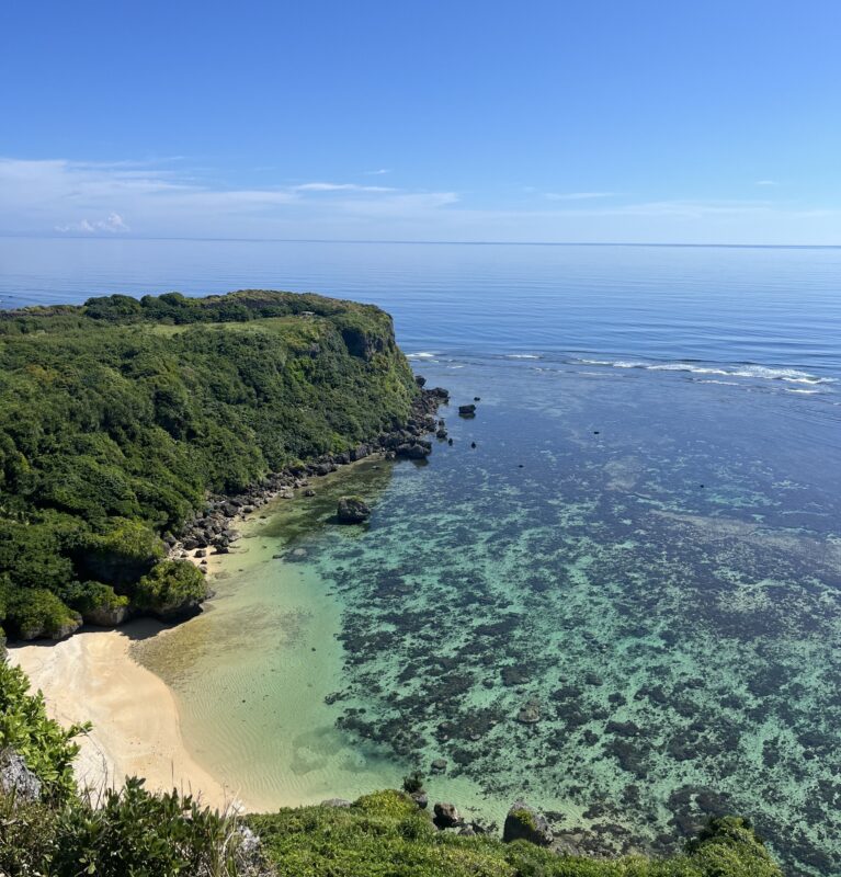果報バンタは、沖縄の言葉で「幸せ岬」の意味をし、標高約70mから壮大な海を眺めることができます。